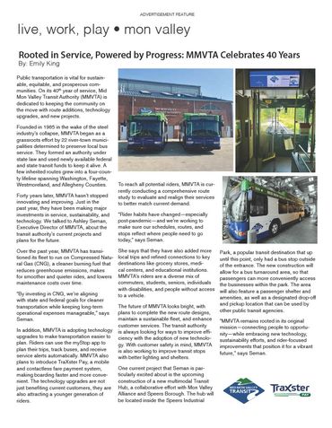 I designed a native ad and a set of profile ads for Mon Valley Transit, the public transportation system for the Mon Valley area to be released during the last week of June. The native ad, sponsored content that ran in the Observer-Reporter and lives on the Observer website, was laid out in InDesign. I also created six different size variations of the profile ad in Photoshop to make sure everything could be used across both print and digital platforms. Once this was all completed, I helped the team upload the native and profile ads onto Wordpress.